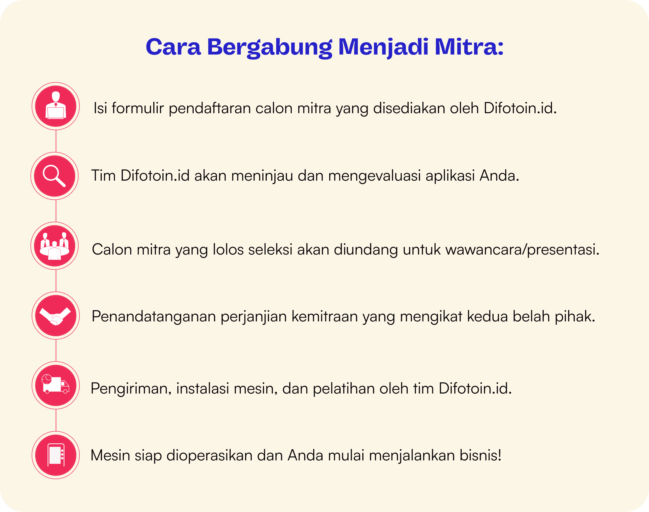 Setelah itu, mitra wajib membayarkan biaya bagi hasil kepada Difotoin.id sebesar 20% dari total penjualan, dengan detail yang dapat dilihat di dashboard mitra.